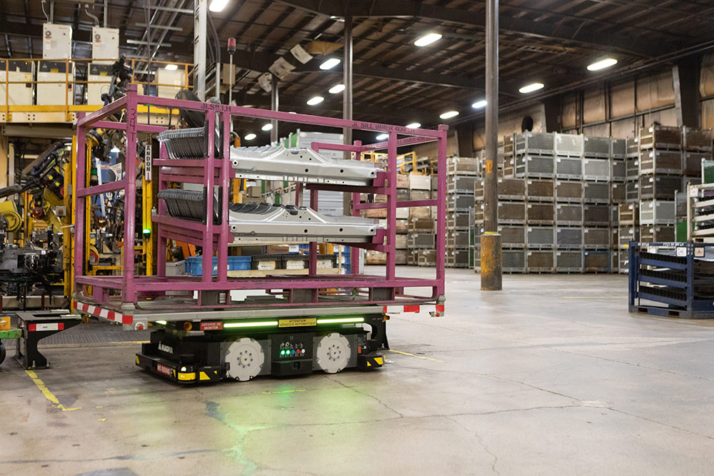 Autonomous mobile robots (AMRs) are a key building block of Magna’s unified factory—moving materials safely, continuously, and adaptively.